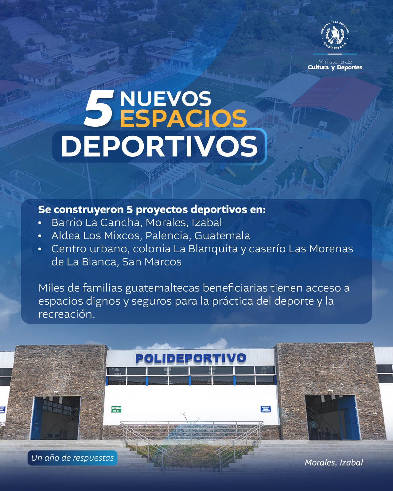 Cinco nuevos espacios deportivos hoy son puntos de encuentro y bienestar para miles de familias.