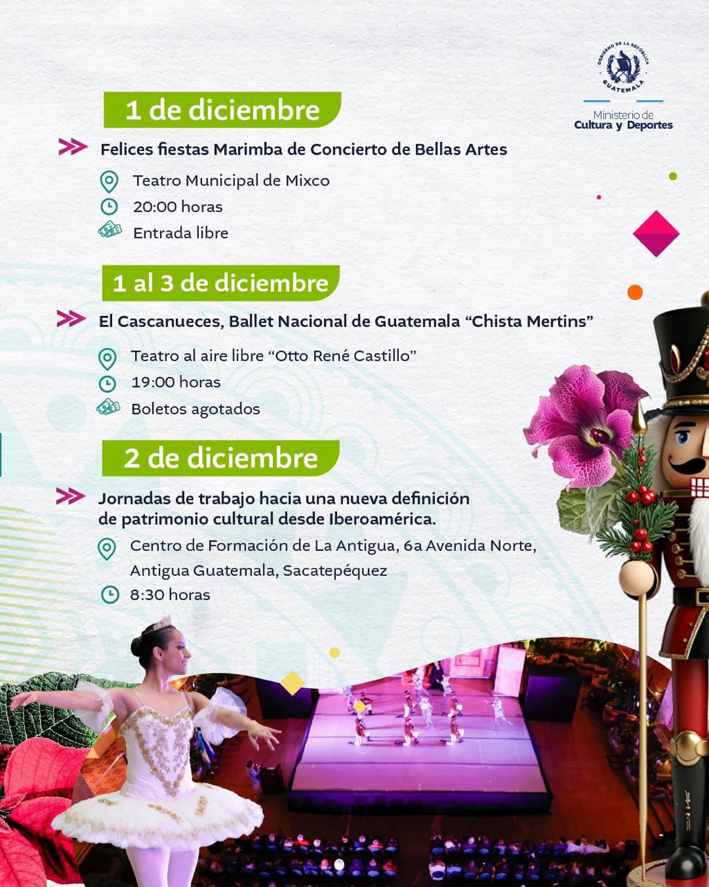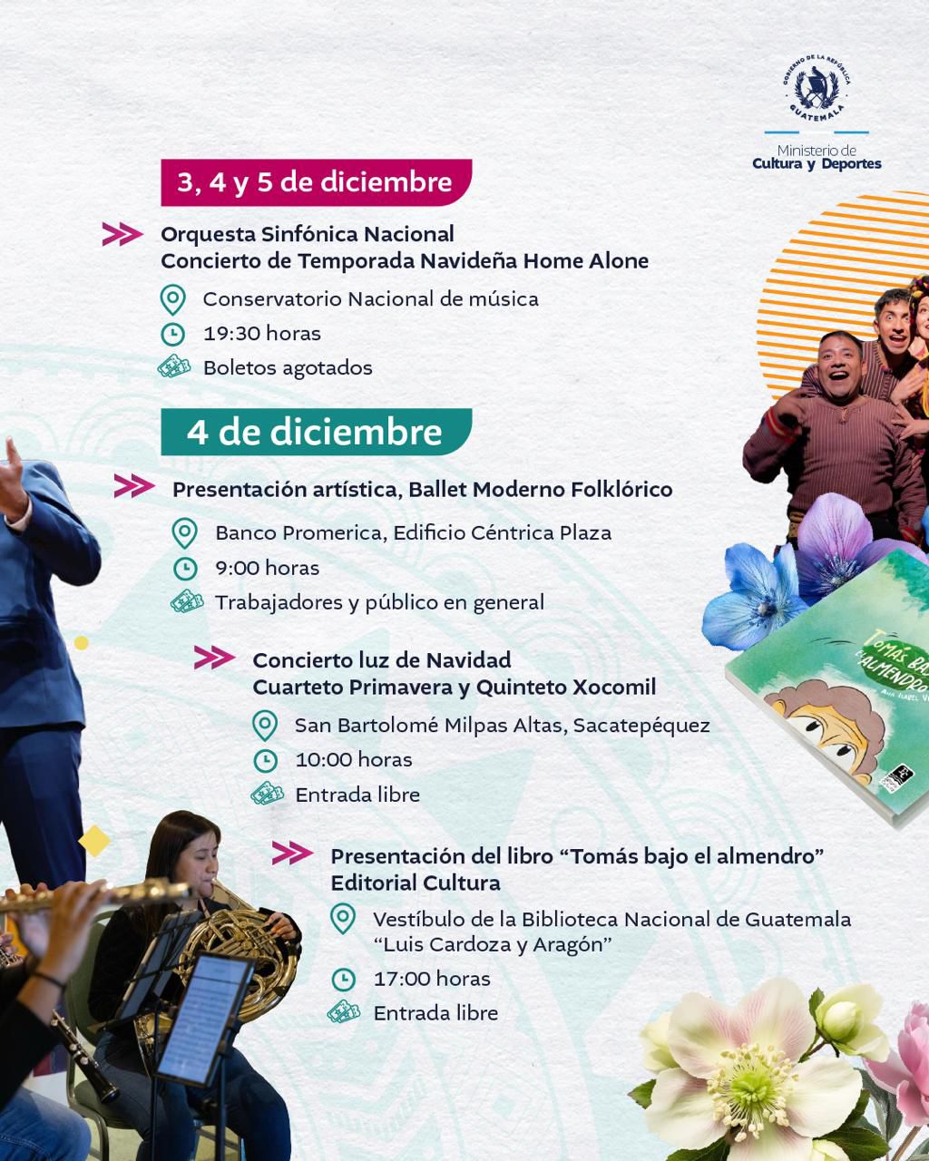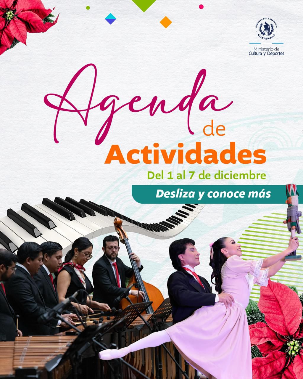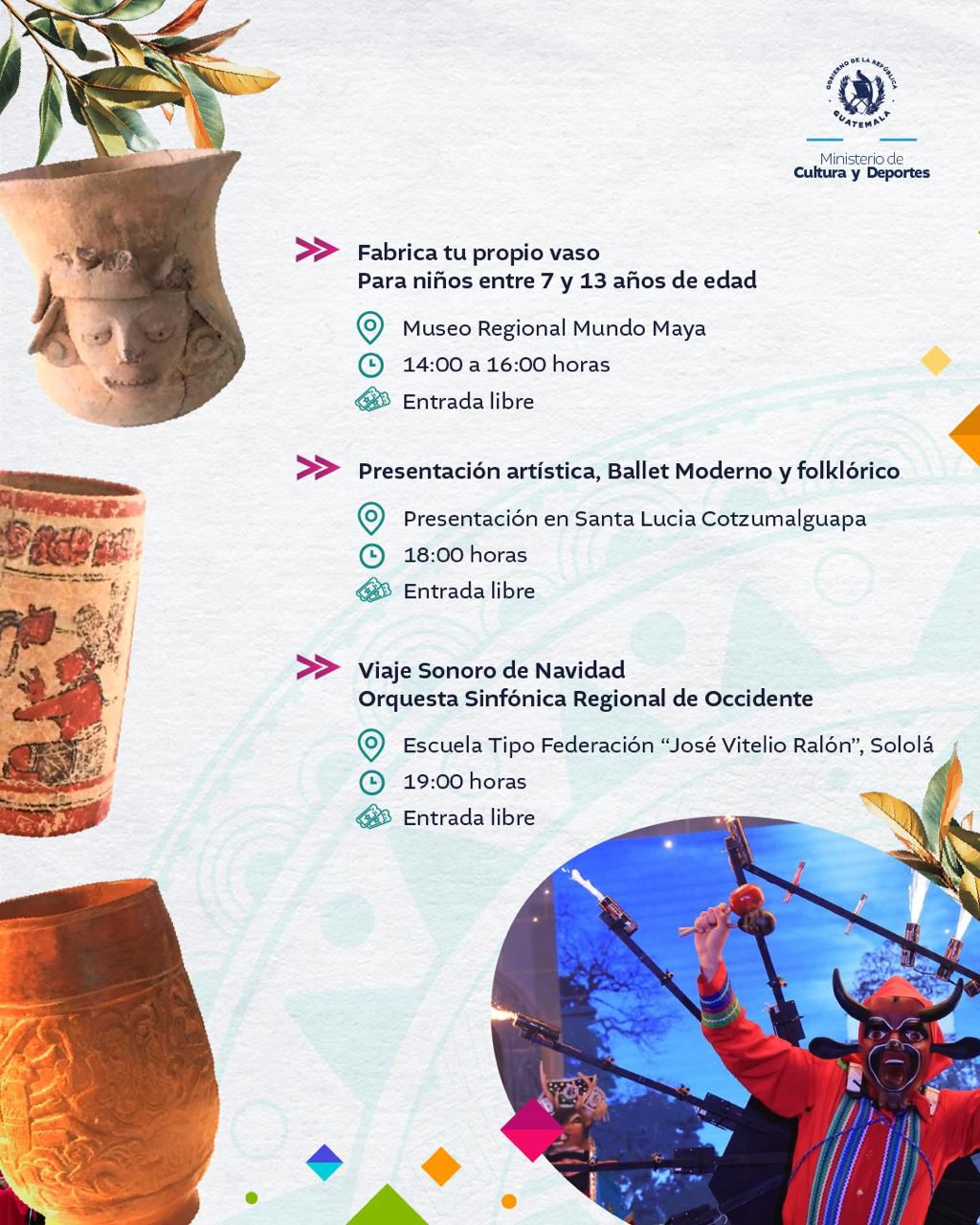 <div class="clearfix text-formatted field field--name-body field--type-text-with-summary field--label-hidden field__item" data-quickedit-field-id="node/36004/body/es/full"> El arte y la cultura, te esperan en cada actividad. #AlPuebloDignoSeLeResponde <img class="aligncenter size-full wp-image-68049" src="https://guatemala.gob.gt/wp-content/uploads/2025/12/WhatsApp-Image-2025-12-01-at-08.04.53-1.jpeg" alt="" width="1024" height="1280" /> <img class="aligncenter size-full wp-image-68050" src="https://guatemala.gob.gt/wp-content/uploads/2025/12/WhatsApp-Image-2025-12-01-at-08.04.53-2.jpeg" alt="" width="1024" height="1280" /> <img class="aligncenter size-full wp-image-68051" src="https://guatemala.gob.gt/wp-content/uploads/2025/12/WhatsApp-Image-2025-12-01-at-08.04.53.jpeg" alt="" width="1024" height="1280" /> <img class="aligncenter size-full wp-image-68052" src="https://guatemala.gob.gt/wp-content/uploads/2025/12/WhatsApp-Image-2025-12-01-at-08.04.54-1.jpeg" alt="" width="1024" height="1280" /> <img class="aligncenter size-full wp-image-68053" src="https://guatemala.gob.gt/wp-content/uploads/2025/12/WhatsApp-Image-2025-12-01-at-08.04.54-2.jpeg" alt="" width="1024" height="1280" /> <img class="aligncenter size-full wp-image-68054" src="https://guatemala.gob.gt/wp-content/uploads/2025/12/WhatsApp-Image-2025-12-01-at-08.04.54.jpeg" alt="" width="1024" height="1280" /> <img class="aligncenter size-full wp-image-68055" src="https://guatemala.gob.gt/wp-content/uploads/2025/12/WhatsApp-Image-2025-12-01-at-08.04.52-1.jpeg" alt="" width="1024" height="1280" /> <img class="aligncenter size-full wp-image-68056" src="https://guatemala.gob.gt/wp-content/uploads/2025/12/WhatsApp-Image-2025-12-01-at-08.04.52-2.jpeg" alt="" width="1024" height="1280" /> <img class="aligncenter size-full wp-image-68057" src="https://guatemala.gob.gt/wp-content/uploads/2025/12/WhatsApp-Image-2025-12-01-at-08.04.52-3.jpeg" alt="" width="1024" height="1280" /> </div> <div class="field field--name-field-graficos field--type-entity-reference-revisions field--label-hidden field__items" data-quickedit-field-id="node/36004/field_graficos/es/full"> <div class="field__item"> <div class="paragraph paragraph--type--incluir- paragraph--view-mode--default" data-quickedit-entity-id="paragraph/141210" data-quickedit-entity-instance-id="0"> <div class="field field--name-field-testfiles field--type-entity-reference-revisions field--label-above" data-quickedit-field-id="paragraph/141210/field_testfiles/es/default"></div> </div> </div> </div>