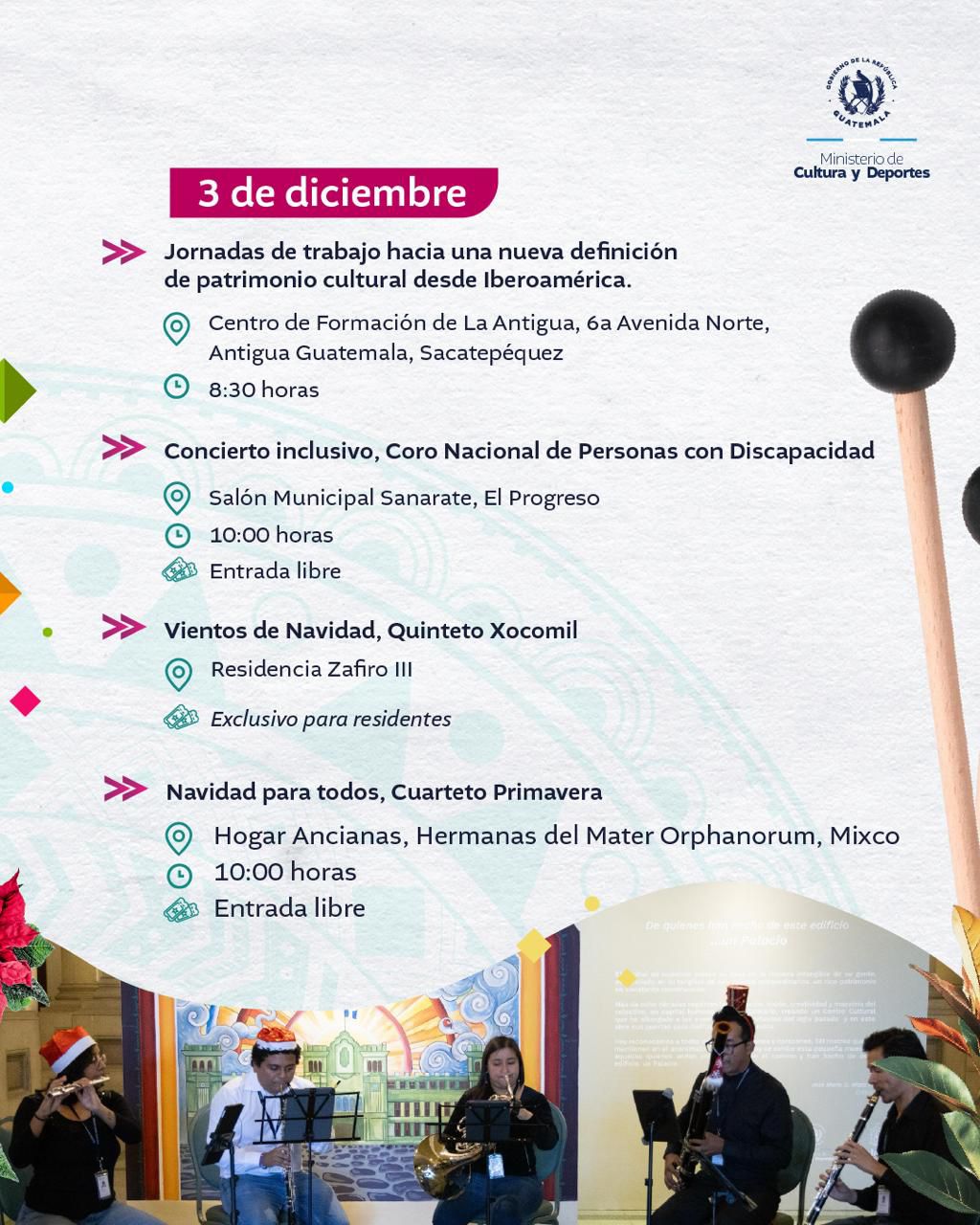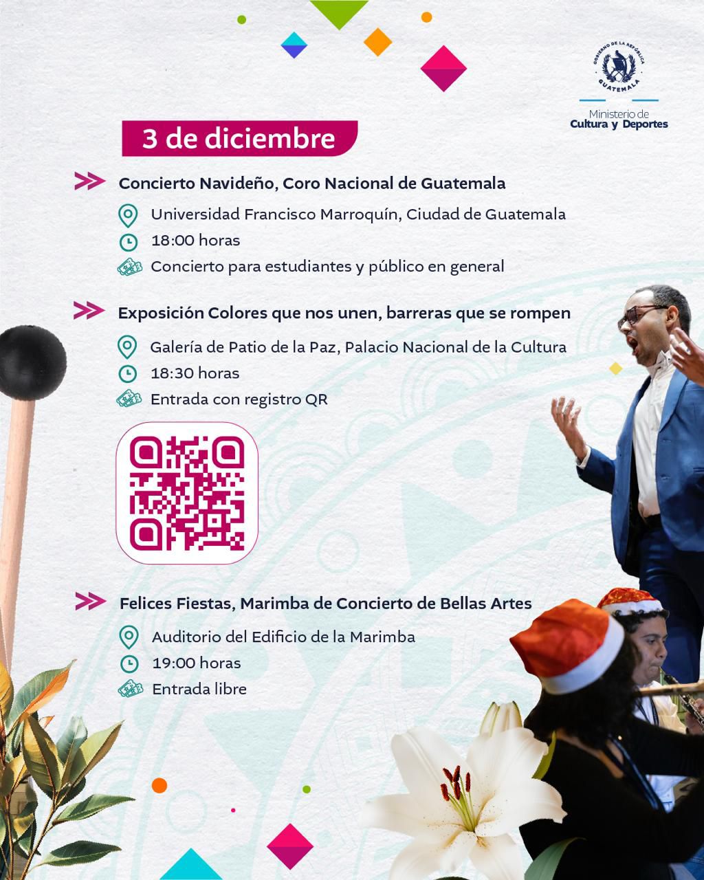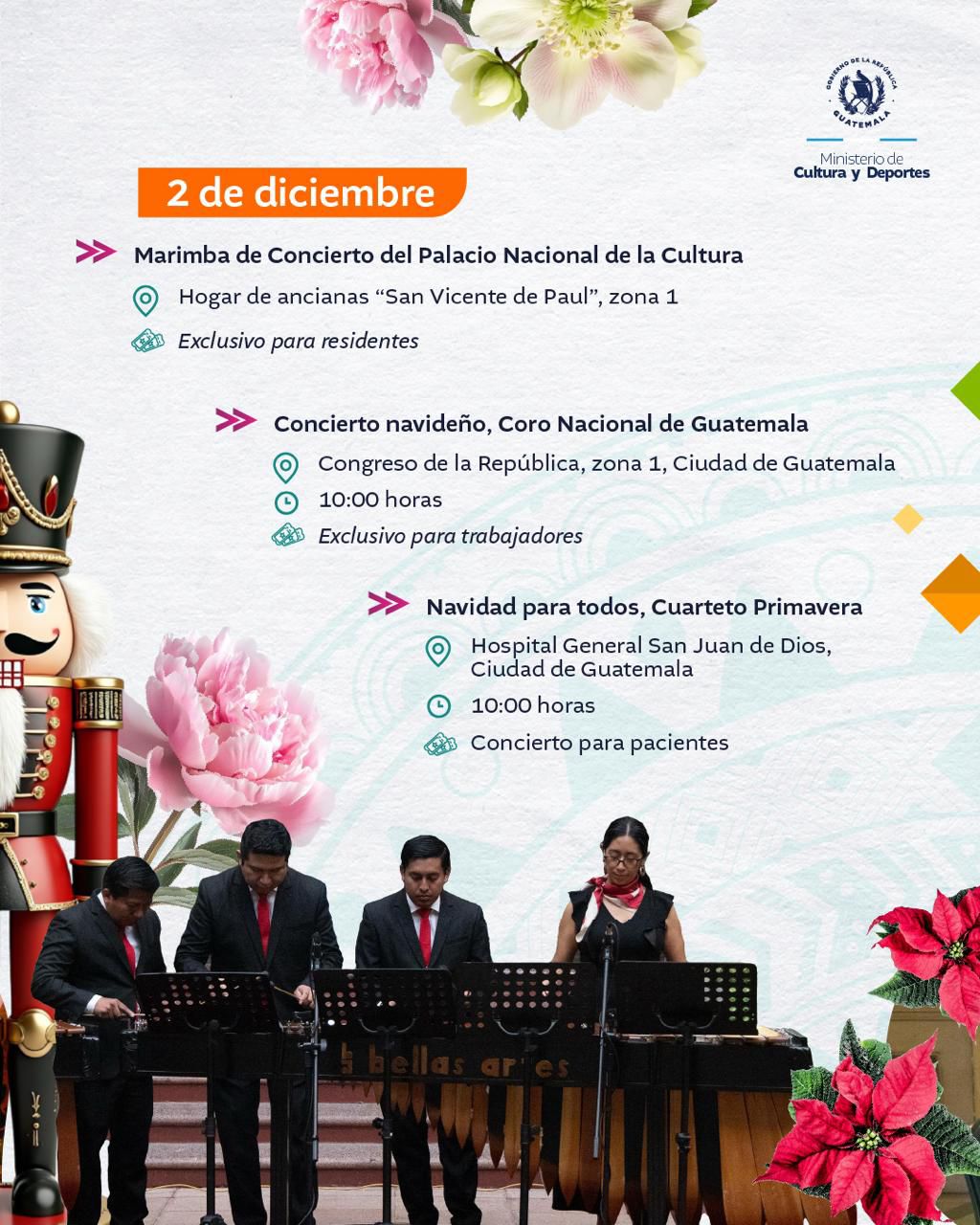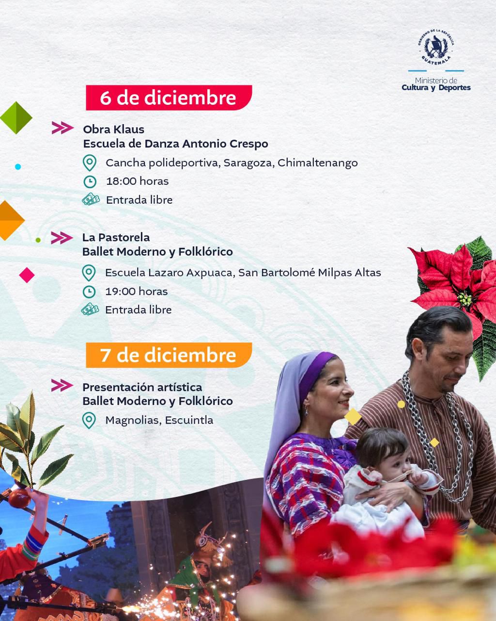 <div class="clearfix text-formatted field field--name-body field--type-text-with-summary field--label-hidden field__item" data-quickedit-field-id="node/36004/body/es/full"> El arte y la cultura, te esperan en cada actividad. #AlPuebloDignoSeLeResponde <img class="aligncenter size-full wp-image-68049" src="https://guatemala.gob.gt/wp-content/uploads/2025/12/WhatsApp-Image-2025-12-01-at-08.04.53-1.jpeg" alt="" width="1024" height="1280" /> <img class="aligncenter size-full wp-image-68050" src="https://guatemala.gob.gt/wp-content/uploads/2025/12/WhatsApp-Image-2025-12-01-at-08.04.53-2.jpeg" alt="" width="1024" height="1280" /> <img class="aligncenter size-full wp-image-68051" src="https://guatemala.gob.gt/wp-content/uploads/2025/12/WhatsApp-Image-2025-12-01-at-08.04.53.jpeg" alt="" width="1024" height="1280" /> <img class="aligncenter size-full wp-image-68052" src="https://guatemala.gob.gt/wp-content/uploads/2025/12/WhatsApp-Image-2025-12-01-at-08.04.54-1.jpeg" alt="" width="1024" height="1280" /> <img class="aligncenter size-full wp-image-68053" src="https://guatemala.gob.gt/wp-content/uploads/2025/12/WhatsApp-Image-2025-12-01-at-08.04.54-2.jpeg" alt="" width="1024" height="1280" /> <img class="aligncenter size-full wp-image-68054" src="https://guatemala.gob.gt/wp-content/uploads/2025/12/WhatsApp-Image-2025-12-01-at-08.04.54.jpeg" alt="" width="1024" height="1280" /> <img class="aligncenter size-full wp-image-68055" src="https://guatemala.gob.gt/wp-content/uploads/2025/12/WhatsApp-Image-2025-12-01-at-08.04.52-1.jpeg" alt="" width="1024" height="1280" /> <img class="aligncenter size-full wp-image-68056" src="https://guatemala.gob.gt/wp-content/uploads/2025/12/WhatsApp-Image-2025-12-01-at-08.04.52-2.jpeg" alt="" width="1024" height="1280" /> <img class="aligncenter size-full wp-image-68057" src="https://guatemala.gob.gt/wp-content/uploads/2025/12/WhatsApp-Image-2025-12-01-at-08.04.52-3.jpeg" alt="" width="1024" height="1280" /> </div> <div class="field field--name-field-graficos field--type-entity-reference-revisions field--label-hidden field__items" data-quickedit-field-id="node/36004/field_graficos/es/full"> <div class="field__item"> <div class="paragraph paragraph--type--incluir- paragraph--view-mode--default" data-quickedit-entity-id="paragraph/141210" data-quickedit-entity-instance-id="0"> <div class="field field--name-field-testfiles field--type-entity-reference-revisions field--label-above" data-quickedit-field-id="paragraph/141210/field_testfiles/es/default"></div> </div> </div> </div>