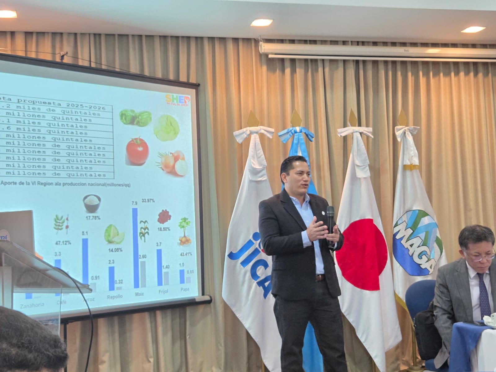 El acto de clausura fue presidido por el ingeniero Felix Concoha, en representación de la Dirección de Coordinación Regional y Extensión Rural (DICORER), junto con Ken Kubokura, de JICA Guatemala, así como representantes de la Secretaría de Planificación y Programación de la Presidencia (SEGEPLAN), de la cartera de Relaciones Exteriores y los expertos SHEP.