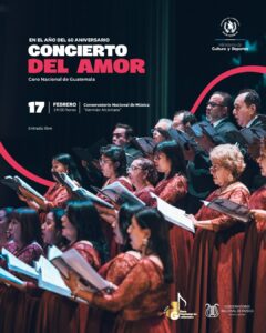 El Coro Nacional de Guatemala te invita a celebrar el Concierto del Amor, una velada especial donde las voces se unen para hacer eco de los sentimientos.