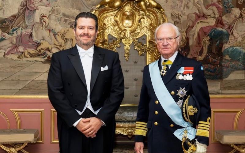 Durante la ceremonia, el diplomático trasladó el saludo en nombre del Presidente de la República de Guatemala, Bernardo Arévalo de León, al Rey de Suecia, reafirmando las históricas y excelentes relaciones bilaterales entre ambos países.