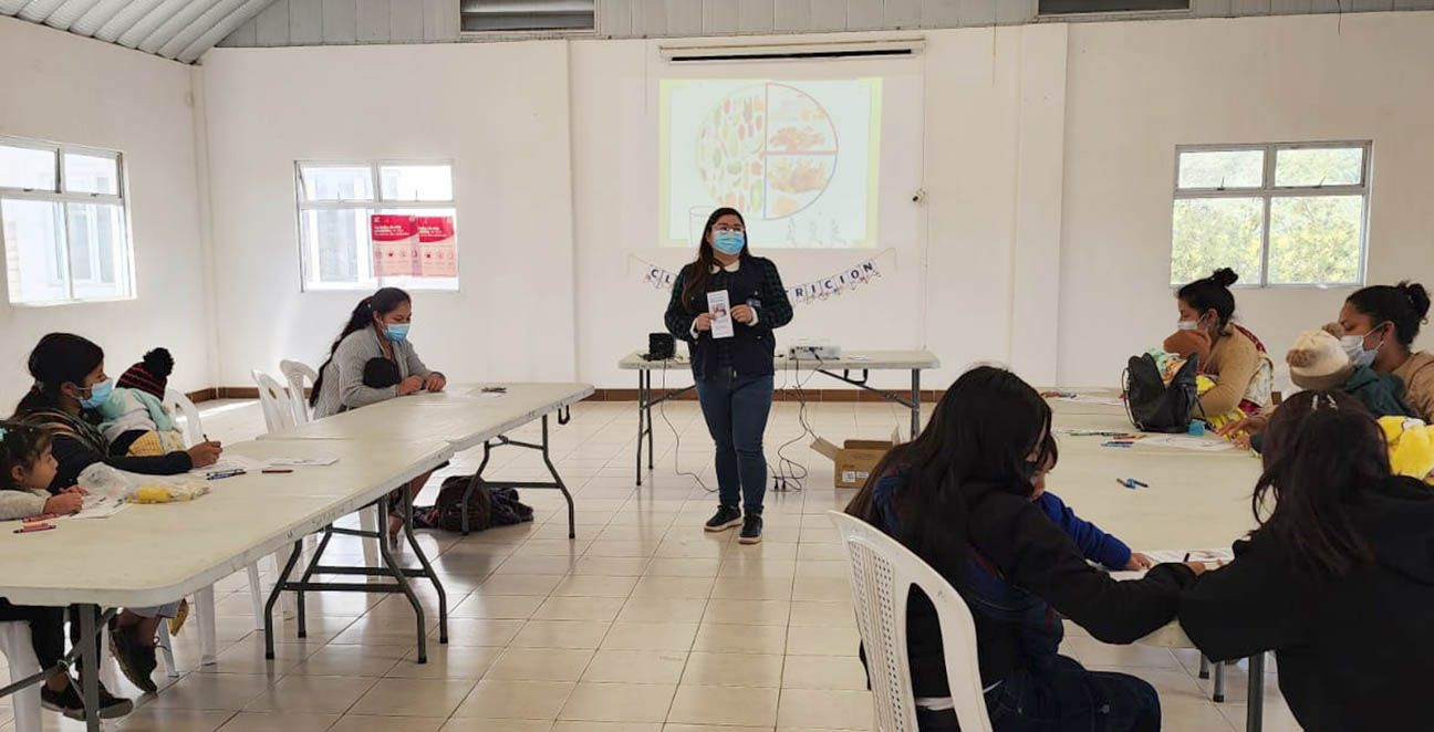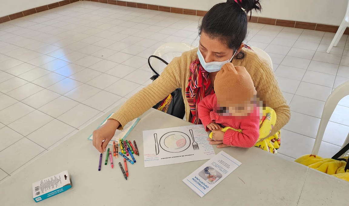 Durante la actividad, personal técnico orientó a las madres acerca de las prácticas de alimentación saludable, mientras que profesionales de salud realizaron la toma de medidas antropométricas para monitorear el avance en la recuperación de los niños.