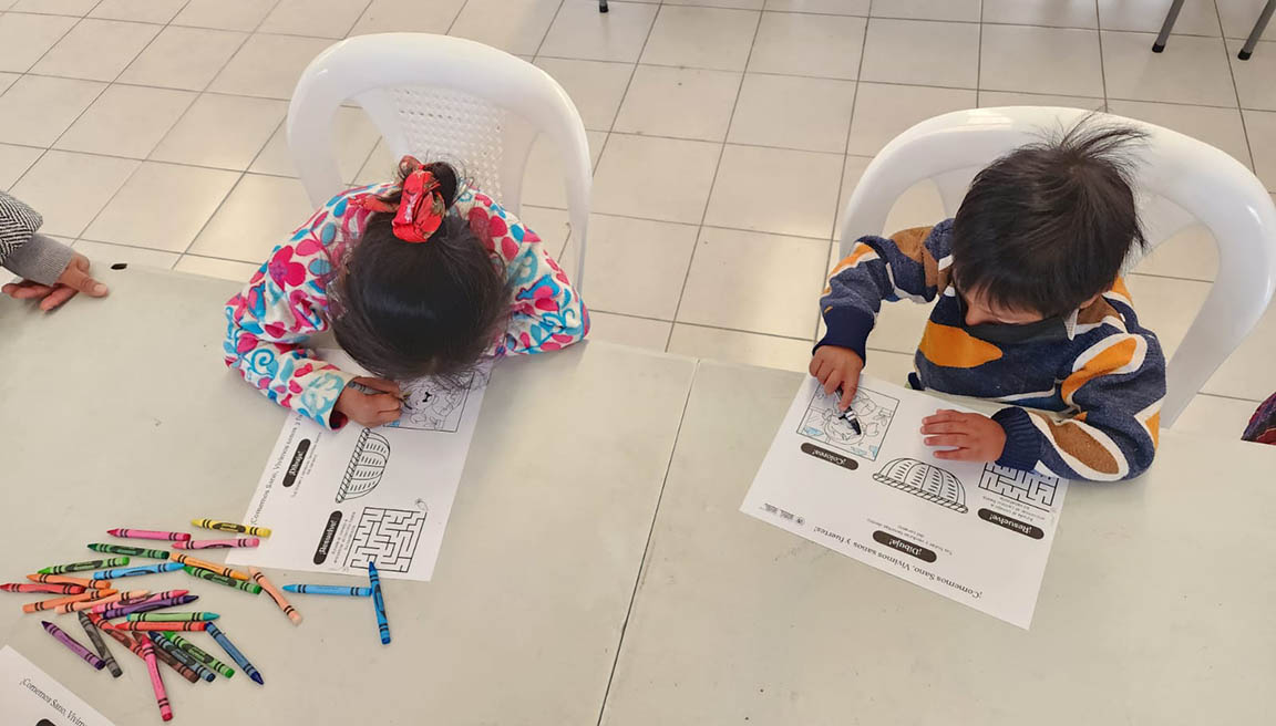 El encuentro incluyó actividades lúdicas en las que madres e hijos aprendieron de forma dinámica sobre hábitos saludables y el aprovechamiento de los recursos disponibles, reforzando conocimientos en un ambiente cercano y participativo.
