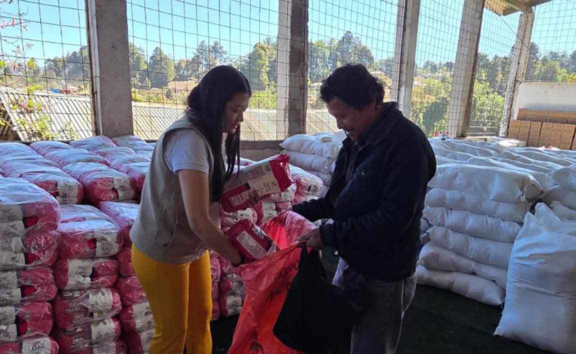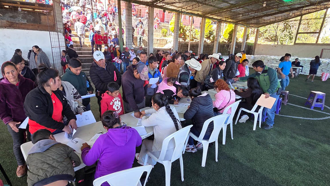 Cada familia recibe una ración integrada por alimentos básicos como arroz, maíz o harina de maíz nixtamalizada, frijol, aceite vegetal, avena, azúcar y una mezcla fortificada de harina de maíz y soya, productos que contribuyen a mejorar la dieta familiar y a reducir los efectos de la inseguridad alimentaria.