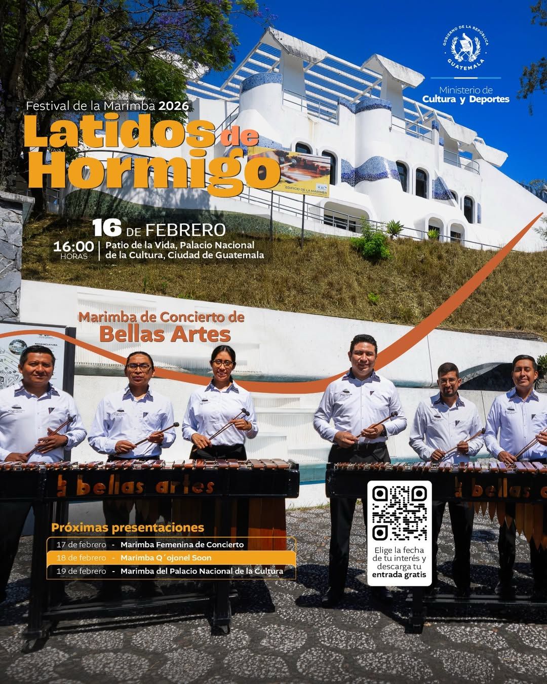 Este 16 de febrero la Marimba de Concierto de Bellas Artes te espera en el Palacio Nacional para vivir una experiencia sonora profundamente ligada a nuestras tradiciones.