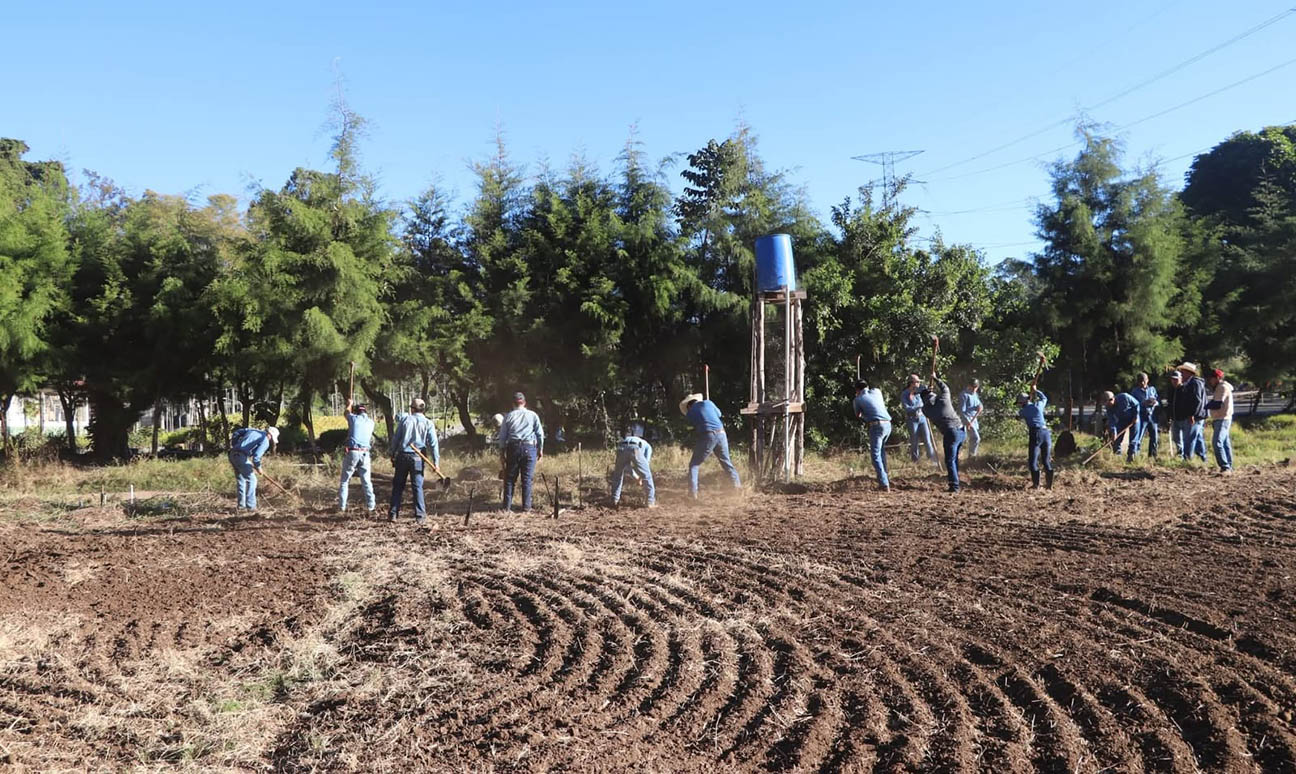 La jornada comenzó con la preparación del suelo, una etapa clave para asegurar el establecimiento óptimo de los cultivos. Durante estas sesiones prácticas, los futuros peritos aplican conocimientos técnicos para garantizar las condiciones físicas ideales del terreno.