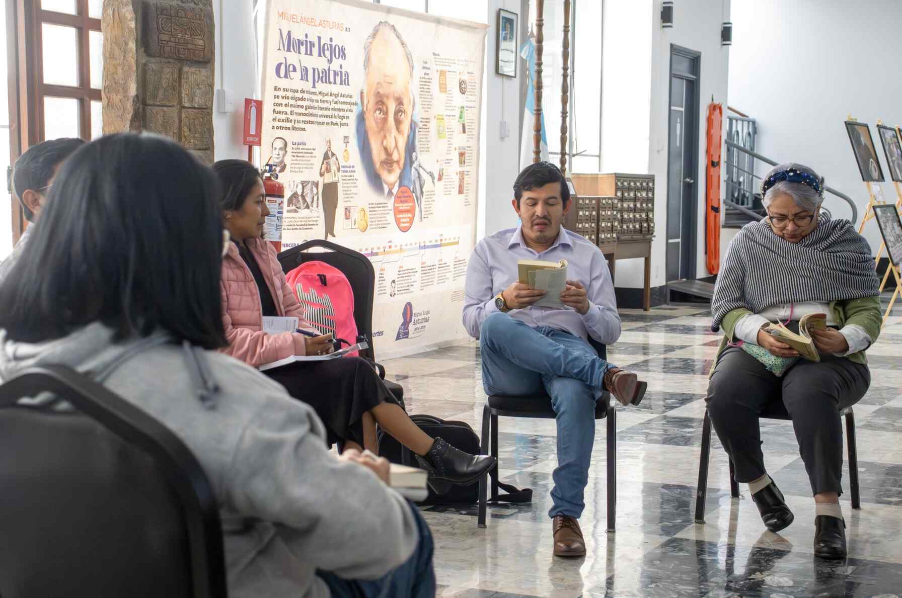 La mañana del 14 de febrero, el Círculo de Lectura inició su jornada en la Biblioteca Nacional de Guatemala “Luis Cardoza y Aragón” abordando “Al Este de la Flora Apacible”, una obra de Payeras que desafía al lector a adentrarse en la cultura y la realidad histórica del país.