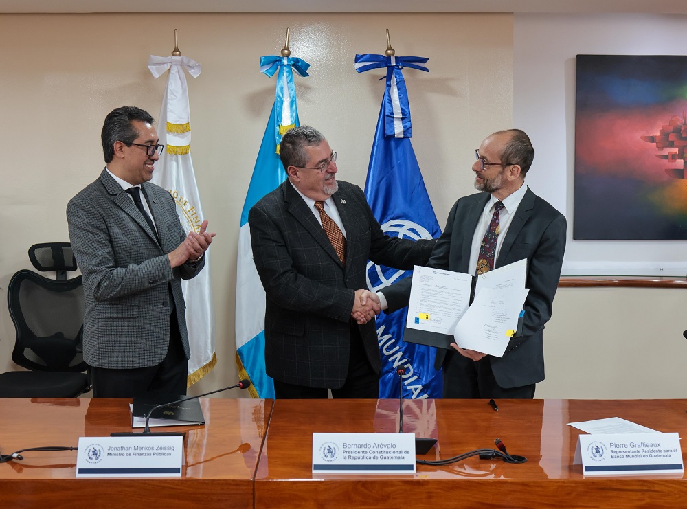 El Ministerio de Finanzas Públicas (Minfin) y el Banco Internacional de Reconstrucción y Fomento (BIRF) suscribieron el Convenio Económico No. 9869-GT el viernes 30 de enero, en el marco de la visita del presidente de la República, Bernardo Arévalo. En el acto participaron el ministro Jonathan Menkos Zeissig y el representante del residente del Banco Mundial (BM), Pierre Graftieaux.