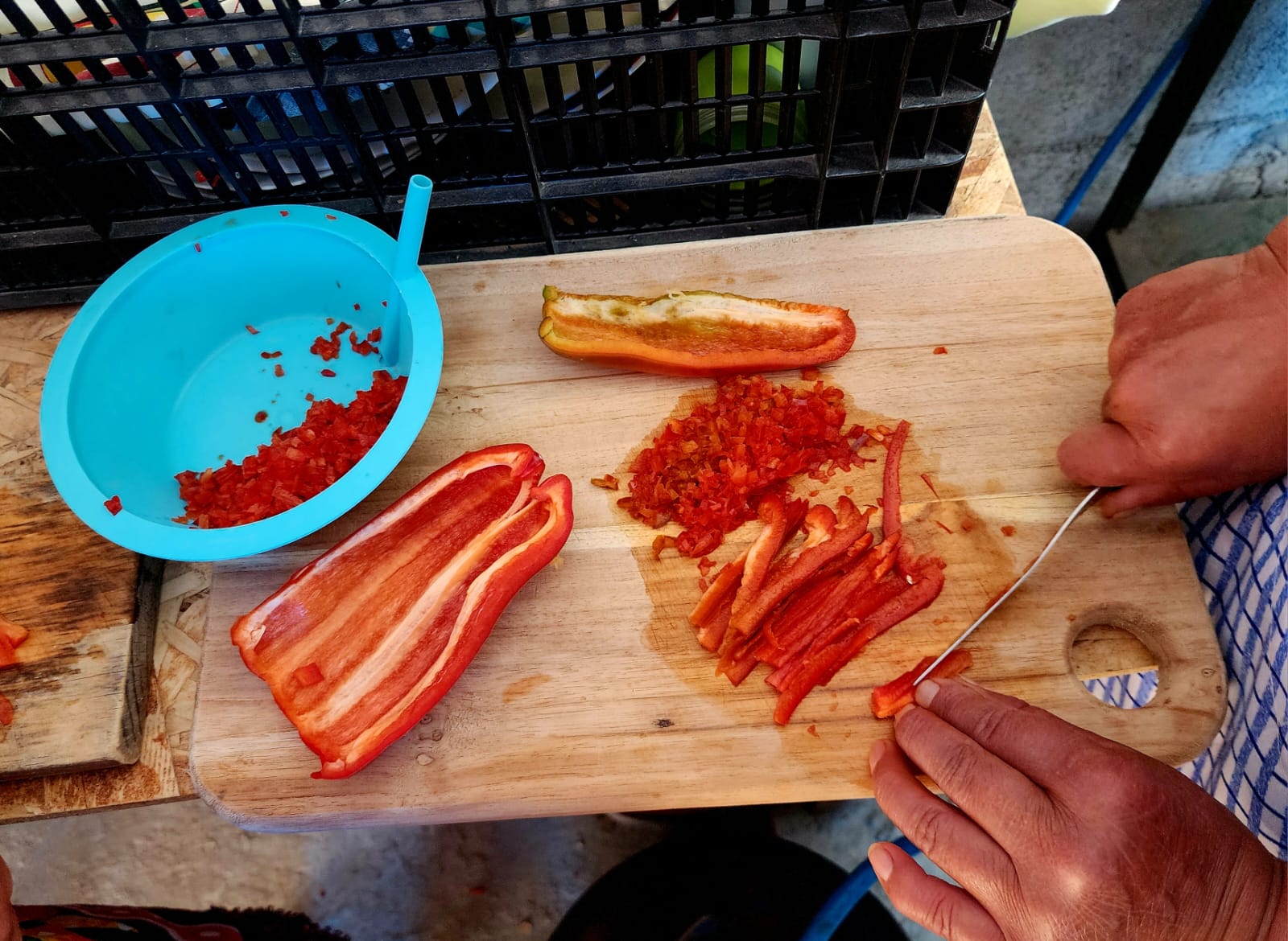 En la fase práctica, las educadoras de hogar rural enseñaron la correcta manipulación de alimentos: limpieza del área de trabajo, desinfección de utensilios, lavado adecuado de manos y uso de redecillas para el cabello. Luego explicaron, paso a paso, la preparación de longanizas típicas y cada participante elaboró su propia porción, para comprender cómo estandarizar el proceso para ofrecer un producto seguro y de calidad.