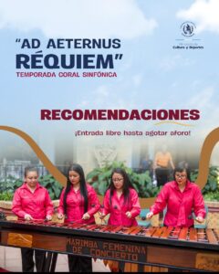 “Ad Aeternus Réquiem” Te compartimos algunas recomendaciones para que vivas este concierto con respeto y atención, en un espacio de memoria y homenaje. Desliza y prepárate para esta experiencia musical. <img class="alignnone size-medium wp-image-72237" src="https://guatemala.gob.gt/wp-content/uploads/2026/02/WhatsApp-Image-2026-02-05-at-09.36.29-240x300.jpeg" alt="" width="240" height="300" />
